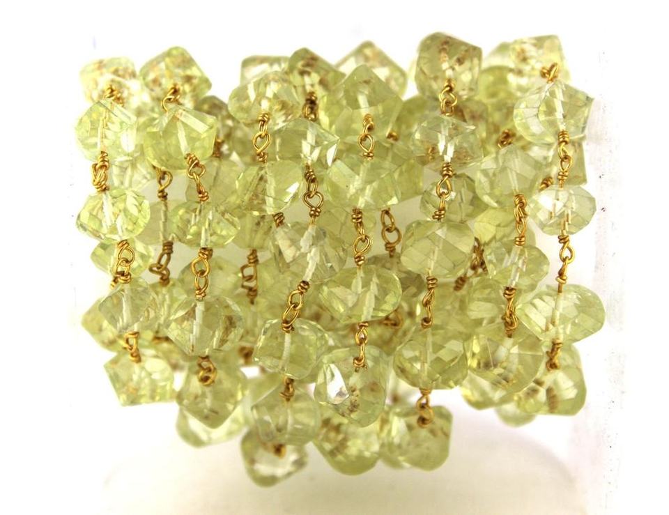 Twisted Rondelle Shape Gold Plated Rosary Chain Natural Lemon Quartz Gemstone Jewelry Accessory Spacers Beads
