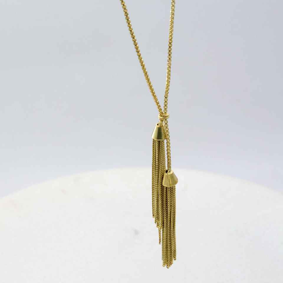 Twisted Rope Long Tassel Necklace in Gold color, Y Vintage Estate necklace Jewelry, Tassel Engraved chain Necklace