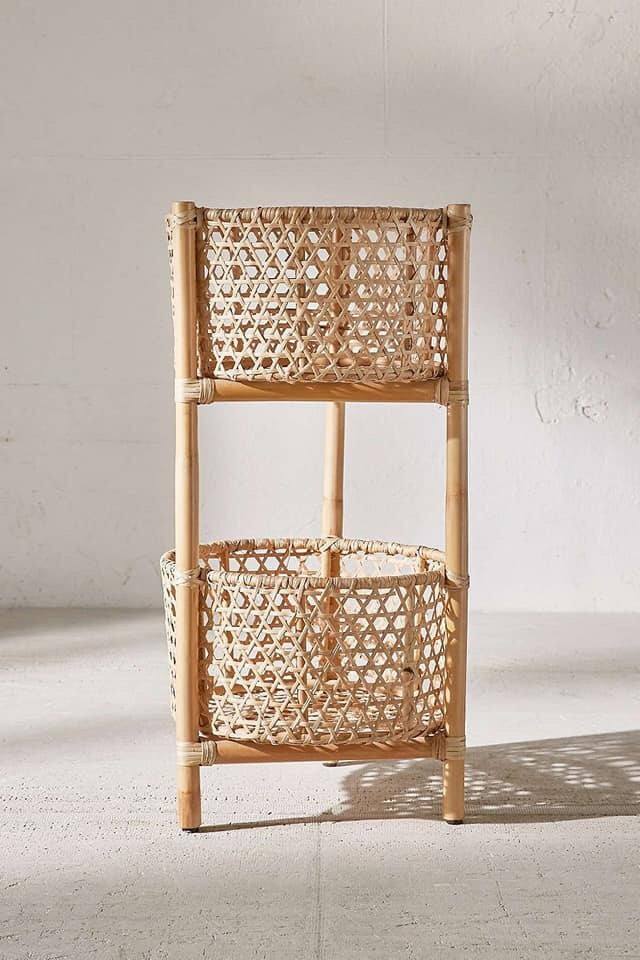 Two 2 Tiers Rattan Bamboo Plant Stand Flower Pots and Planter for Best Home Decoration