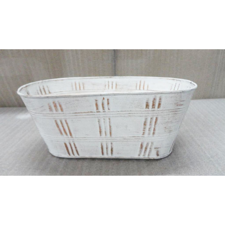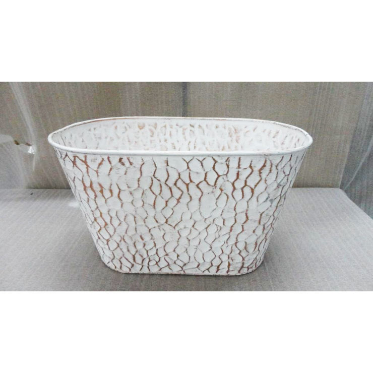 Two Big Flowers Vintage Rustic White Powder Coated Iron Planter Home Decoration Premium Quality Bucket Shape Oval Planter
