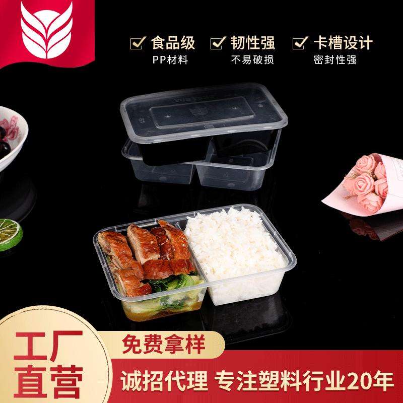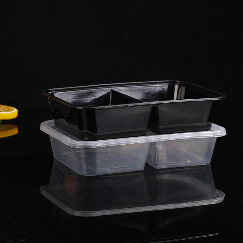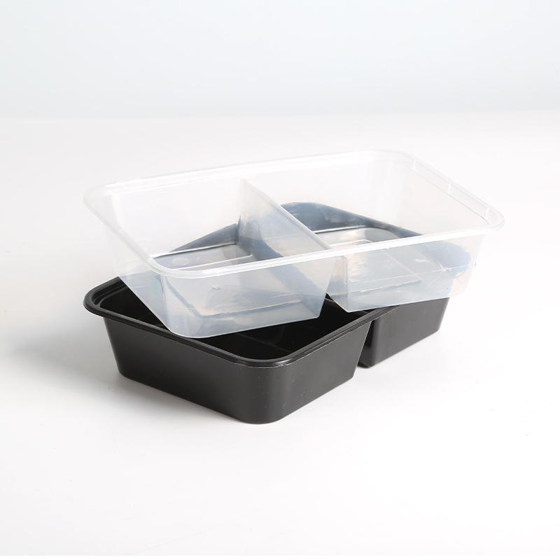 Two Compartment Food Container 500ml Rectangle Plastic Lunch Box Microwave Safe With Lid For Meal Storage