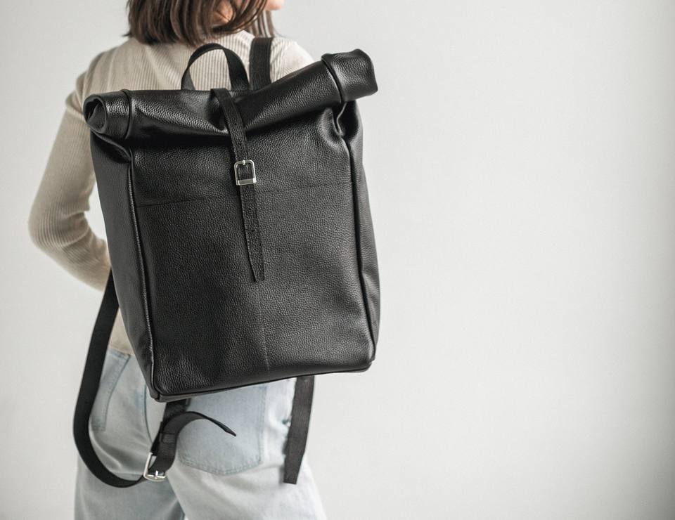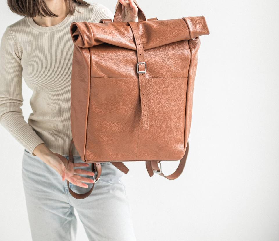 Genuine Leather Roll Top Backpack