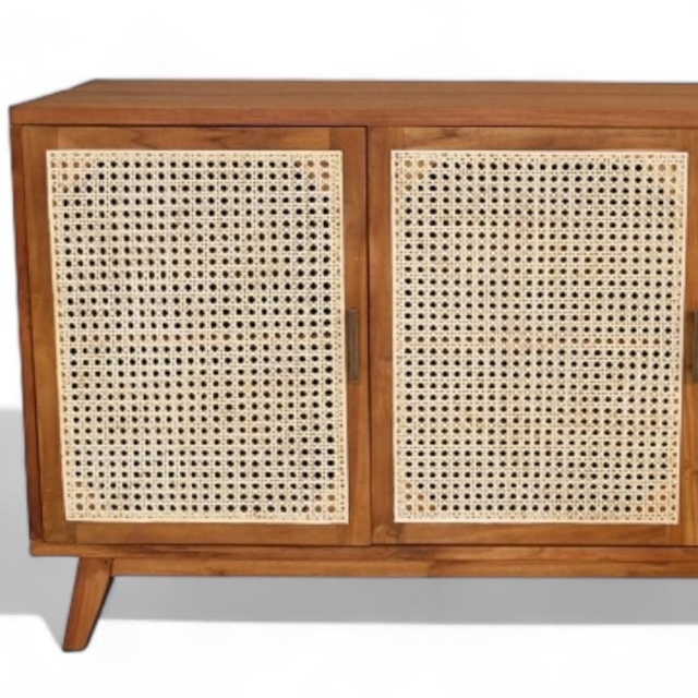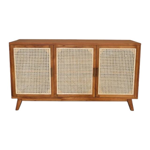 Two Doors Storage Sideboard Convertible Rattan Teak Wood Living Room Cabinet For Home Furniture Decoration