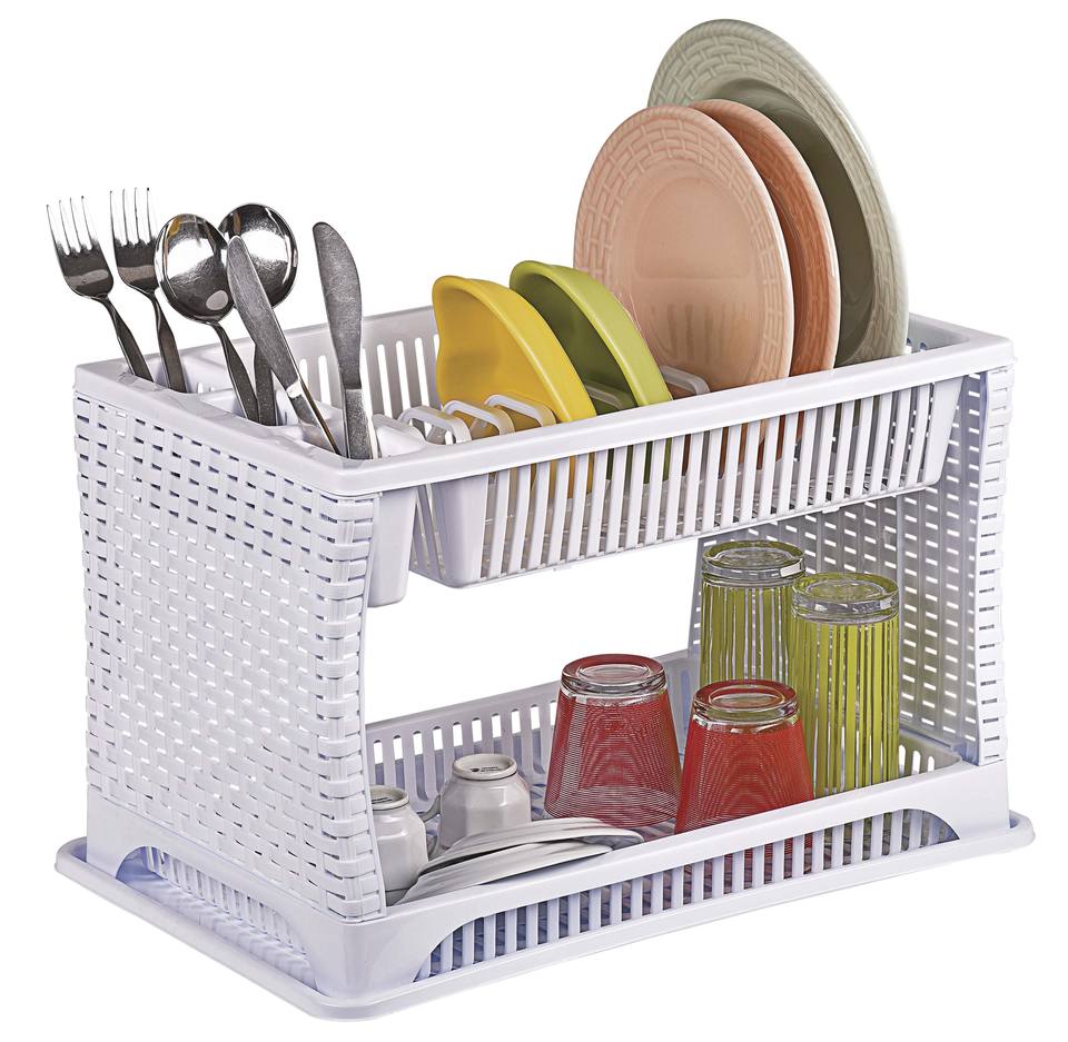 Two-Folded Rattan Dish Rack Durable Storage Holder for Kitchen Dishes and Utensils Water Proof