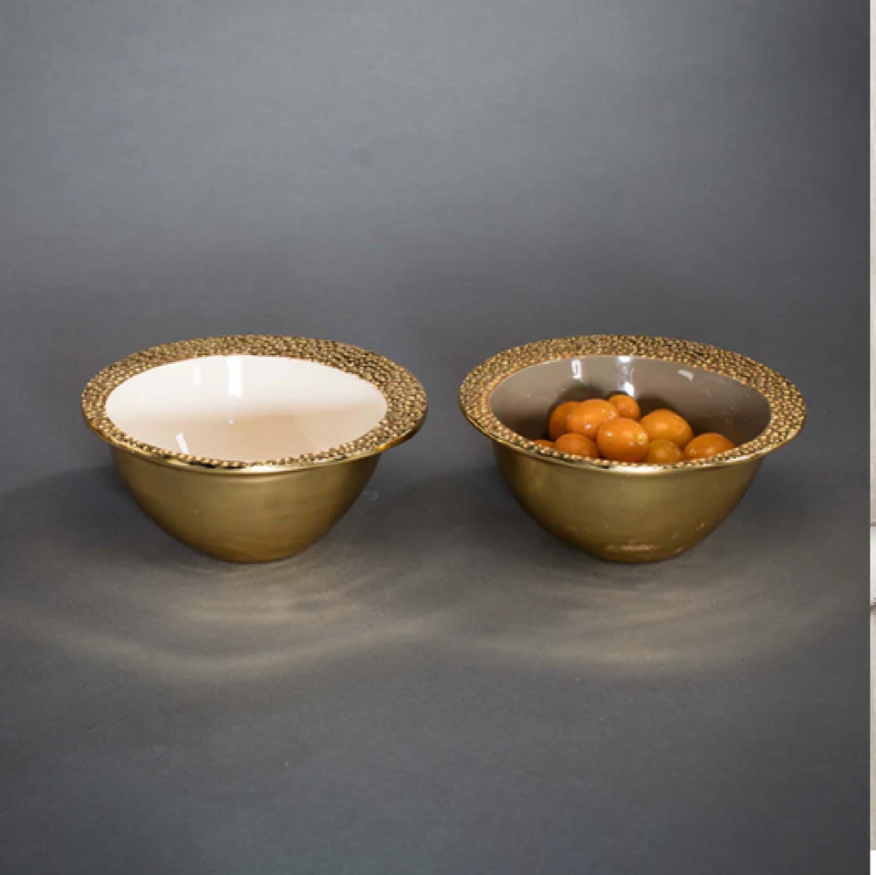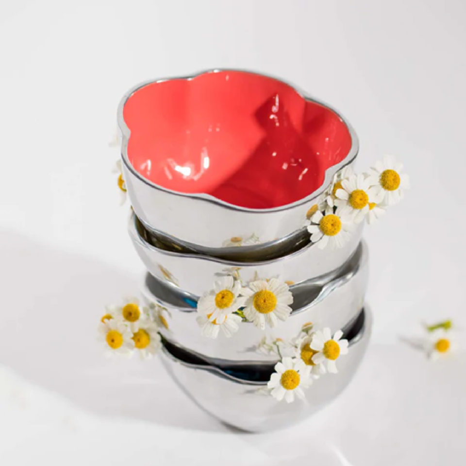 Two Irregularly Shaped Silver Decorative Bowls on a Table Runner - Modern Hammered Metal Bowls for Display or Serving