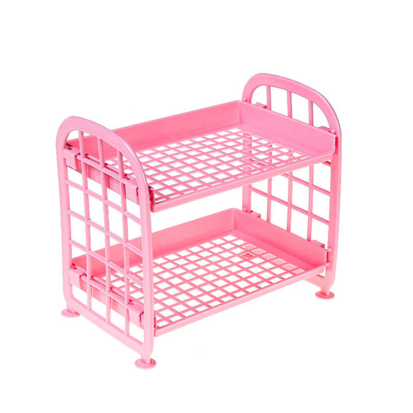 Two Layer Plastic Spice Rack For Kitchen Storage Pink Lightweight Condiment Organizer With Spoon Accessory