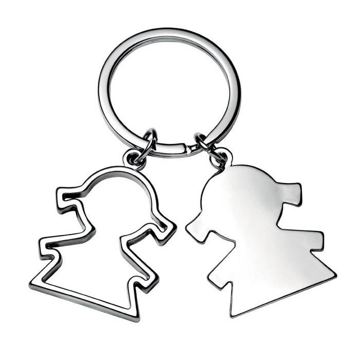 Two Little Girls Metal Keychain Couple Charm Pendant Gift For Her Him
