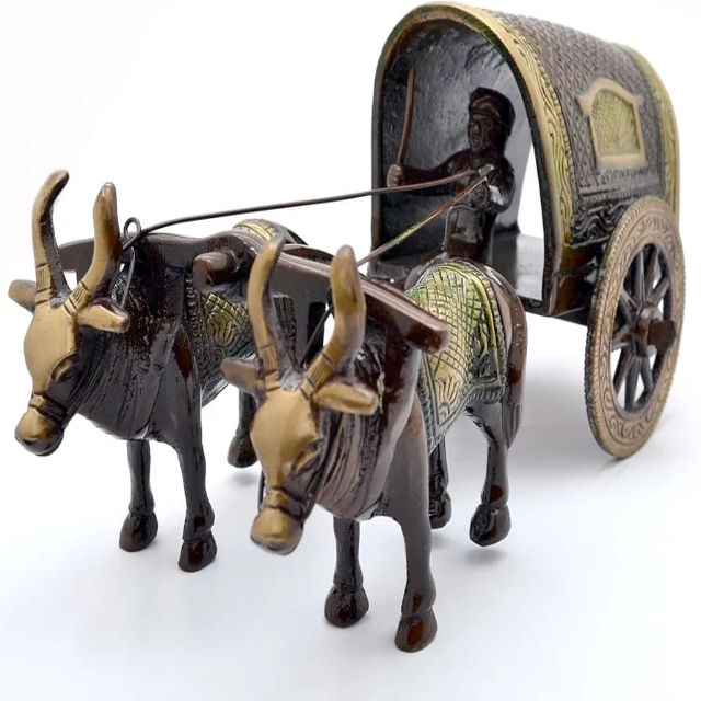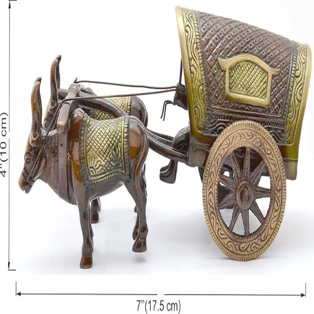 Two Moustaches Village Bullock Cart Replica Vintage Style Brass Showpiece Pack 1