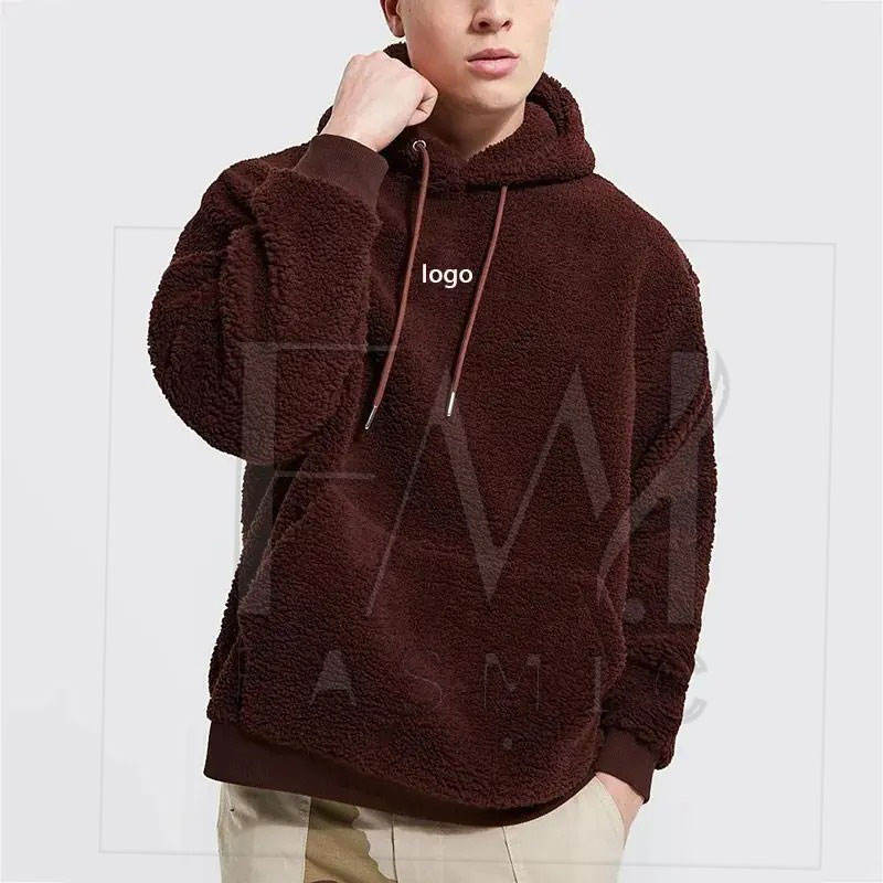 Two Pack Men's 100% Wool Fabric Hoodies Winter Warm Faux Fur Sherpa with Custom Printed Logo Plain Dyed Techniques