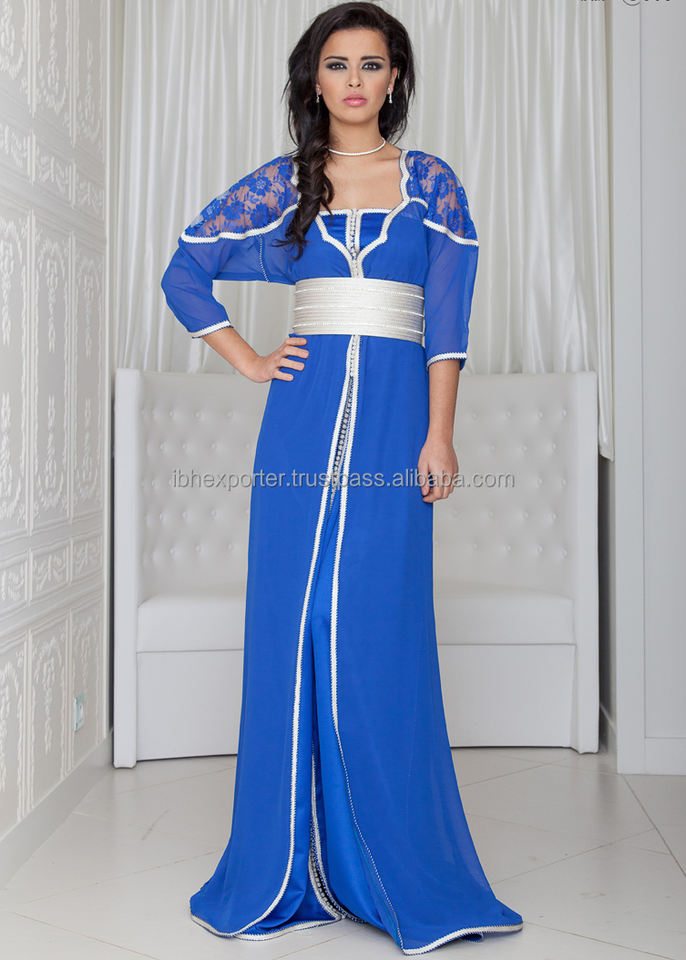 Two Piece Front Open Blue Caftan With Lace Work and Stylish Net Shoulder Sleeves Best for Casual Wear