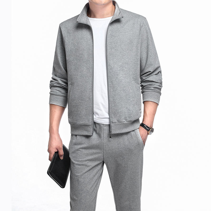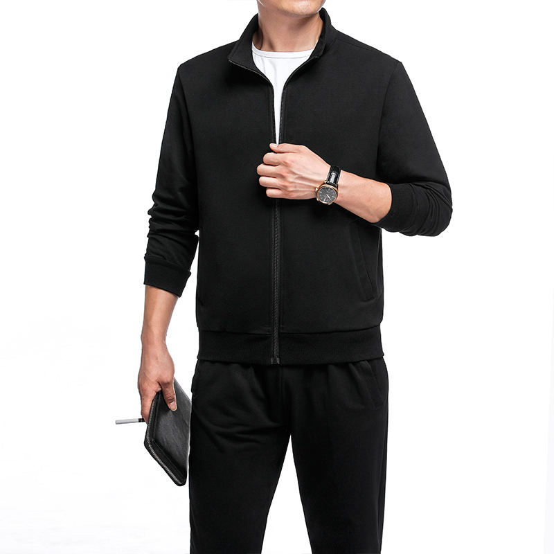 Two Piece Jacket Pant Set With Custom Embroidery Logo Wholesale Cotton Hoodies Jogging Full-zip Up Tracksuit for Men Set