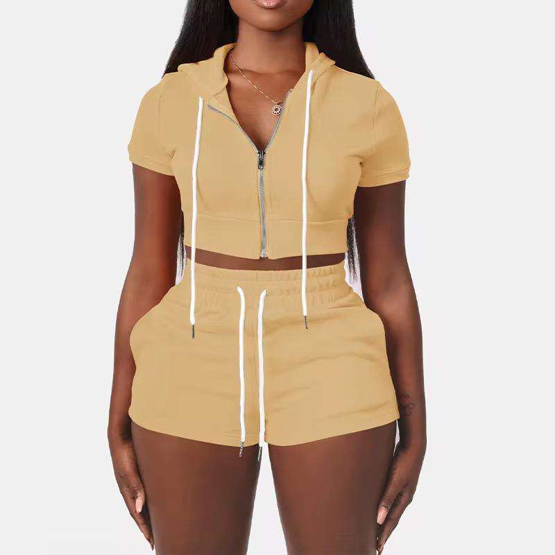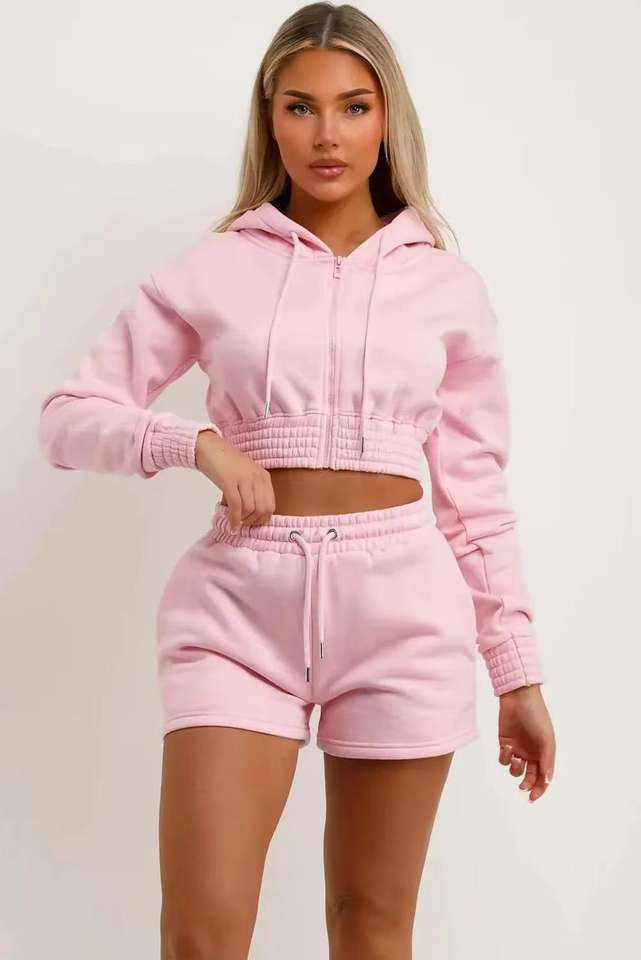 Two Piece Jogger Set Women Custom Crop Top Hoodie Blank Oversized Loose Women Hoodies And Shorts Sets