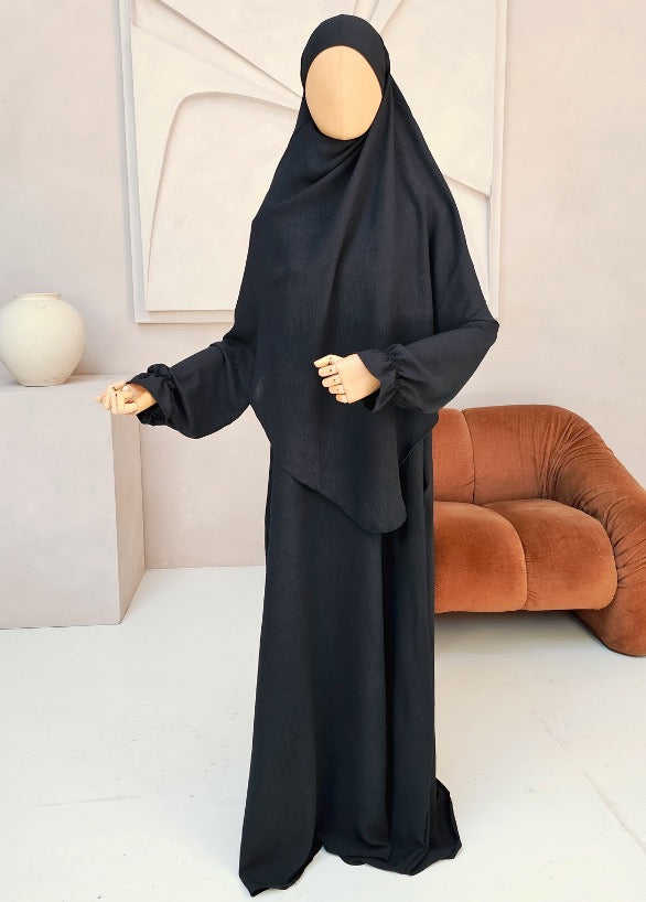 Two-Piece Satin for Jilbab Set Handmade Premium Quality ABAYA Khimar Omani Style for Adults Traditional Muslim Clothing