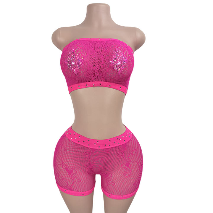 Two-Piece Suit of Sexy Shorts for Women in Club Clothing Rhinestone Pole Dance Outfit Exotic Dancewear Stripper Outfit