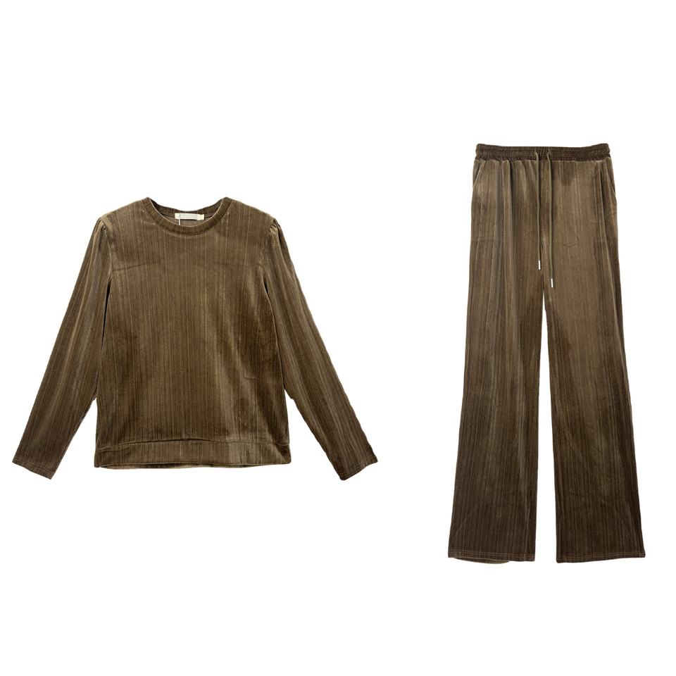 Two Piece Velvet Outfits for Women Custom Fall Tracksuits Tops Long Sleeve Velour Blouses and Straight Pants 2 Piece Sets 2026