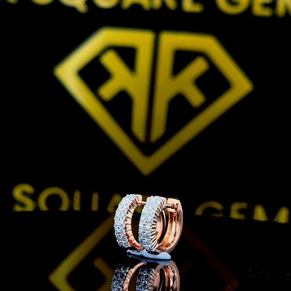 Two Row Moissanite Diamonds Huggies Earrings Solid 10k Rose Gold Prong Small Moissanite Pave Hoop,Handmade Fine Jewelry