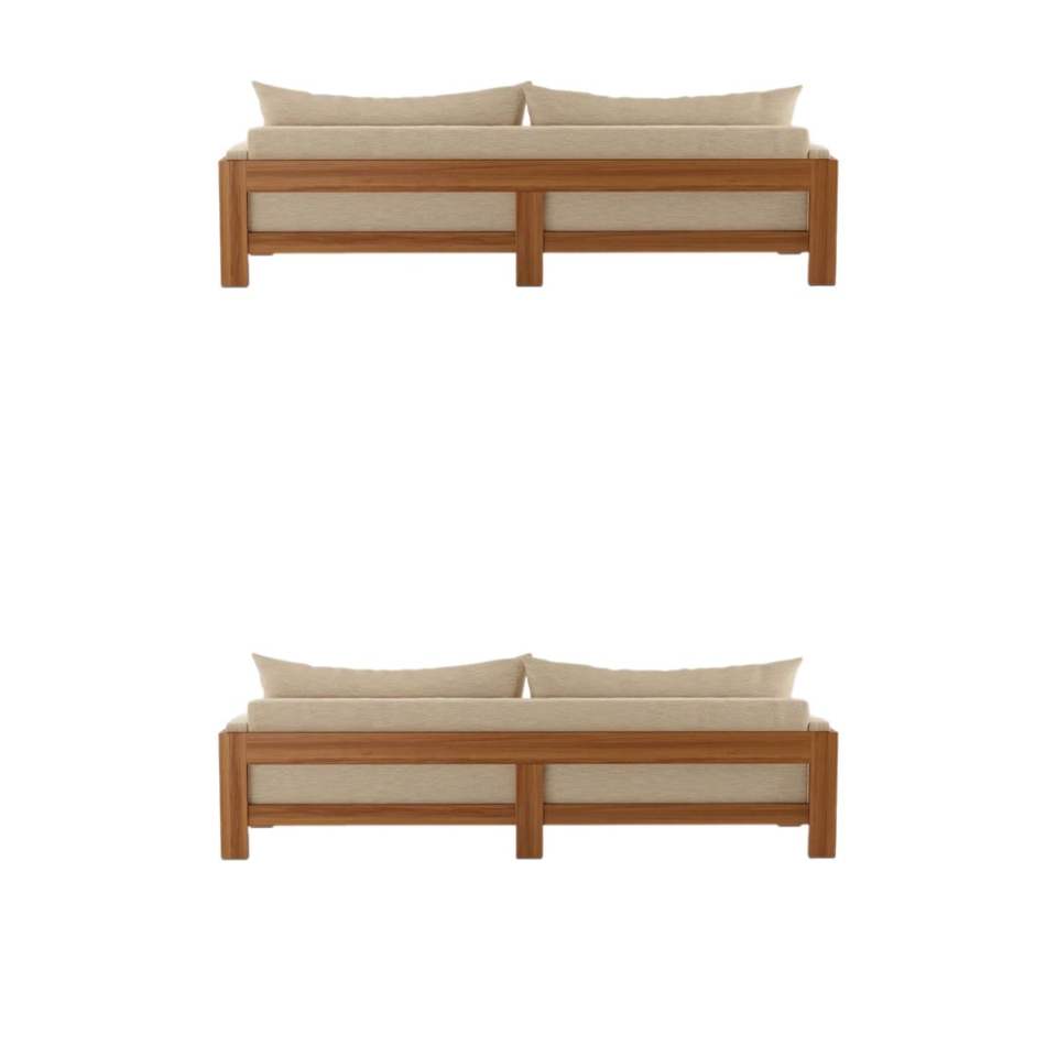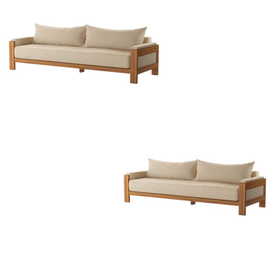 Two-Seater Outdoor Sofa with Armrest Teak Custom Color Cushion Minimalist Style Aqmafurniture for Garden Patio Outdoor Furniture