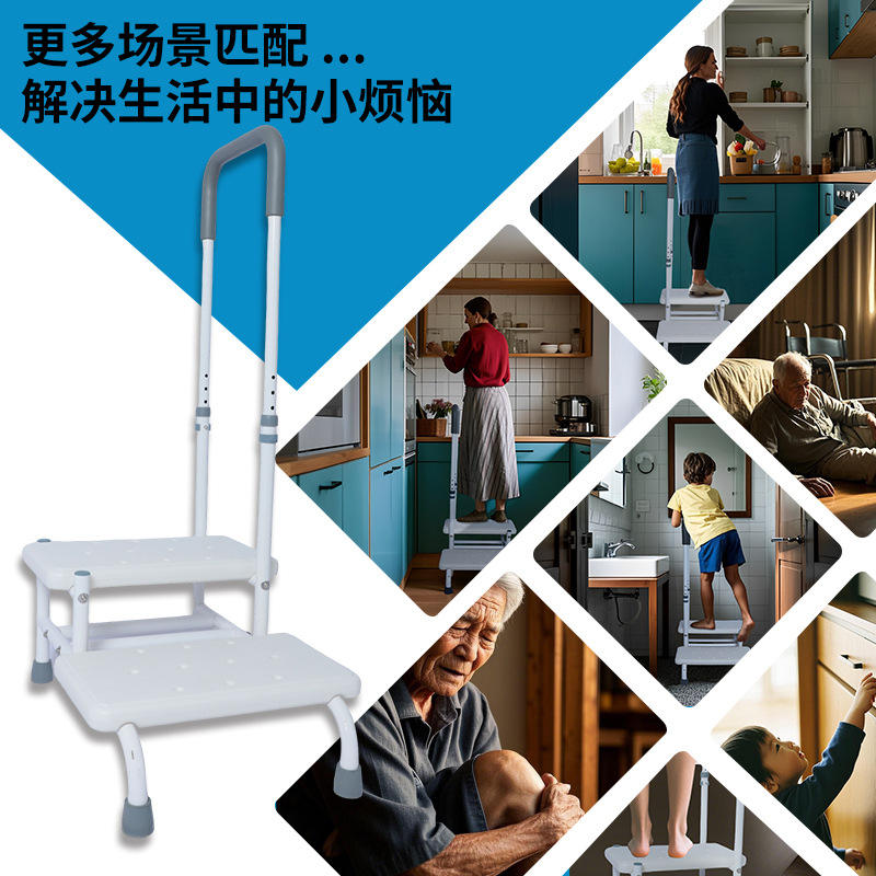 Two-Step Stool With Handle For Elderly Bathroom Safety Equipment Foshan Guangdong Made QC-F851