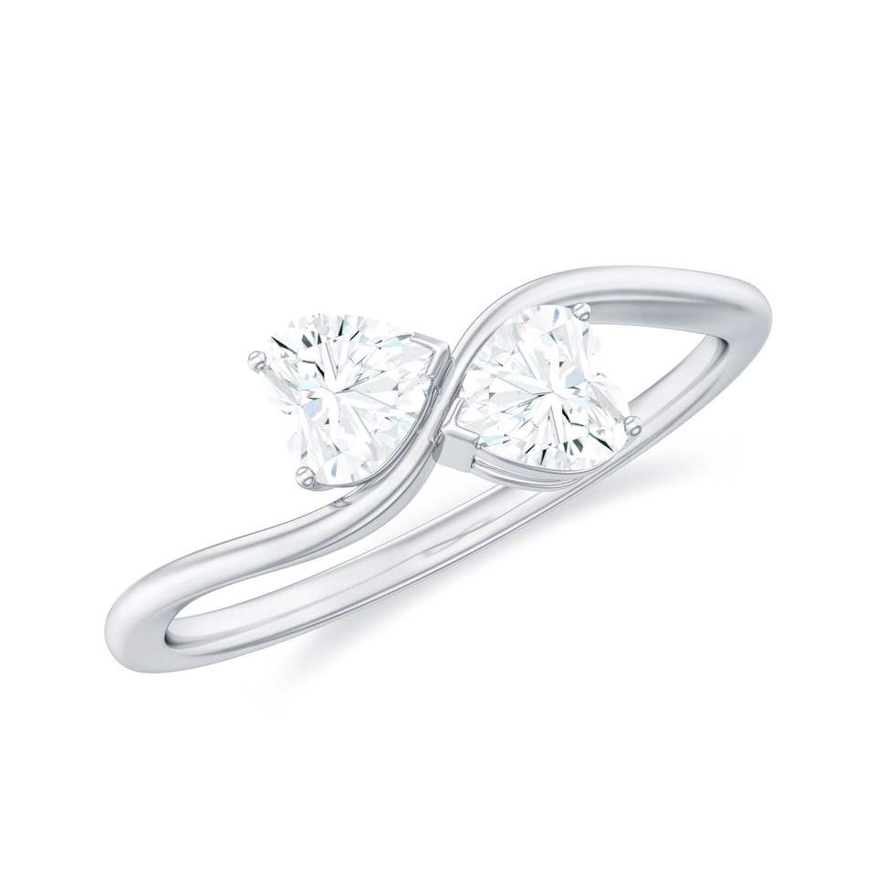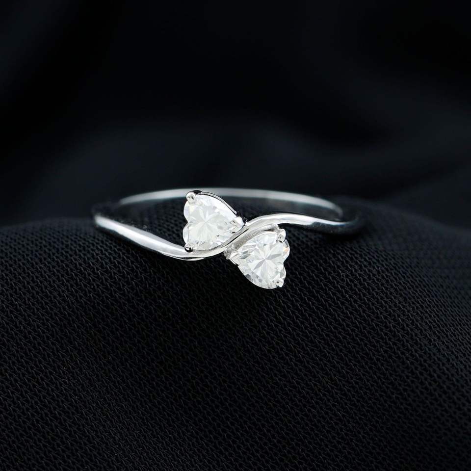 Two Stone Ring for Women - Minimal Moissanite Promise Ring, 925 Sterling Silver
