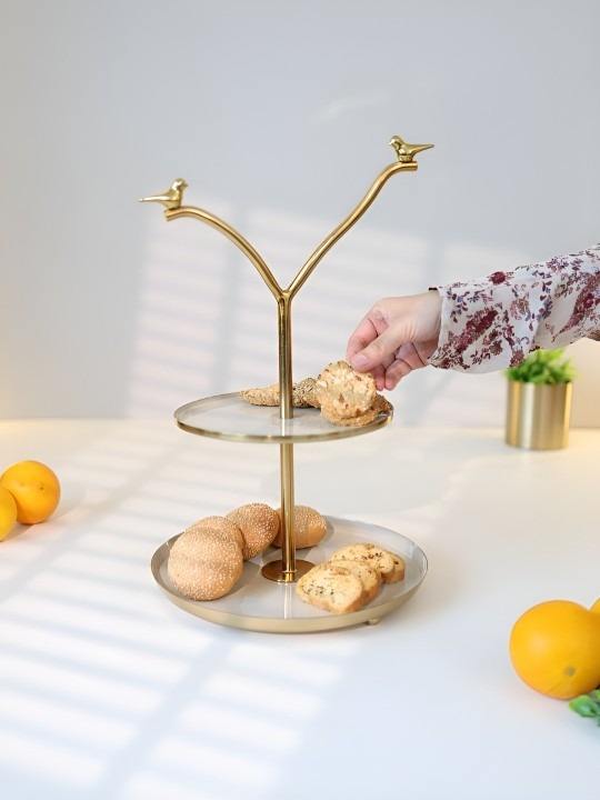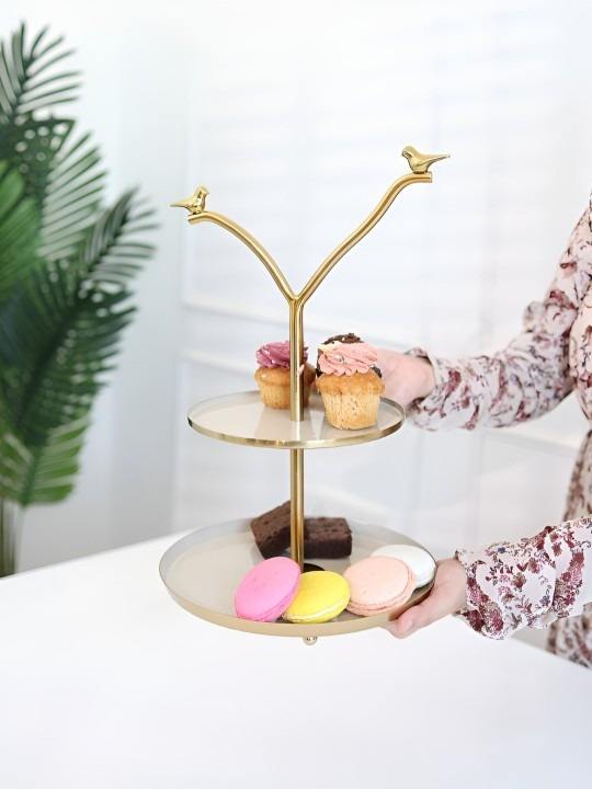 Two Tier Glossy Gold Polished Chocolate stand For Chocolate Serving And Dessert Serving Usage Tabletop Kitchen Supplies Items