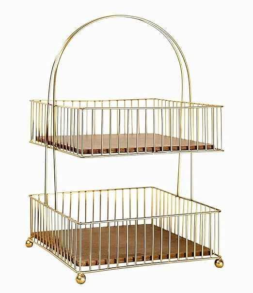 Two Tier Metal Decorative Fruit Spice Vegetable Storage Rack For Kitchen and Tabletop Hotel Restaurant Use Cabinet Spice Rack