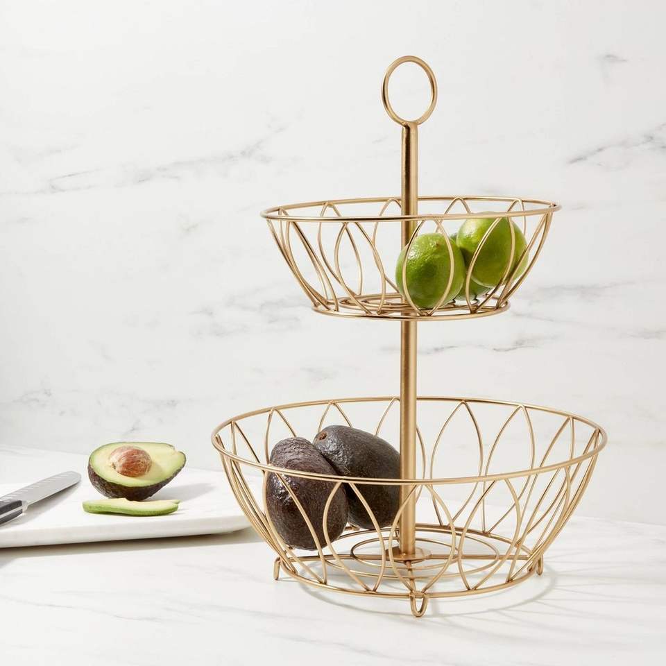 Two Tier Metal Wire Fruit Basket Stand for Kitchen Counter Home Dining Table Food Storage Organizer for Fruits Vegetables Holder