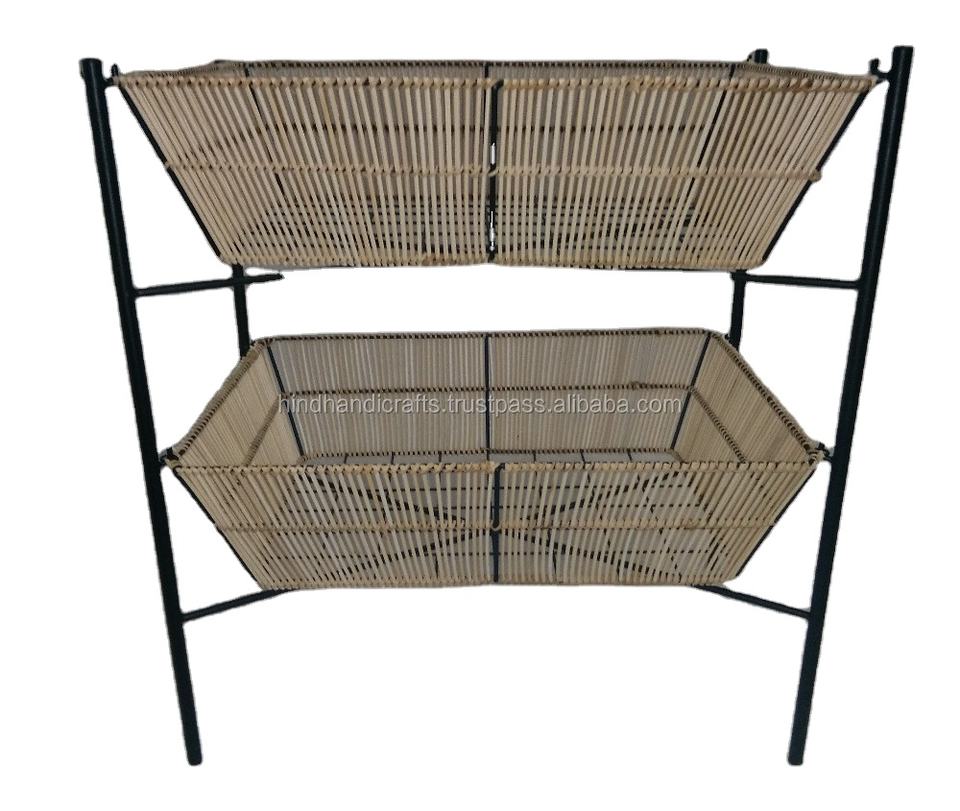 Product name:Two Tier Rattan and Iron Wire basket with stand for fruits & vegetable
