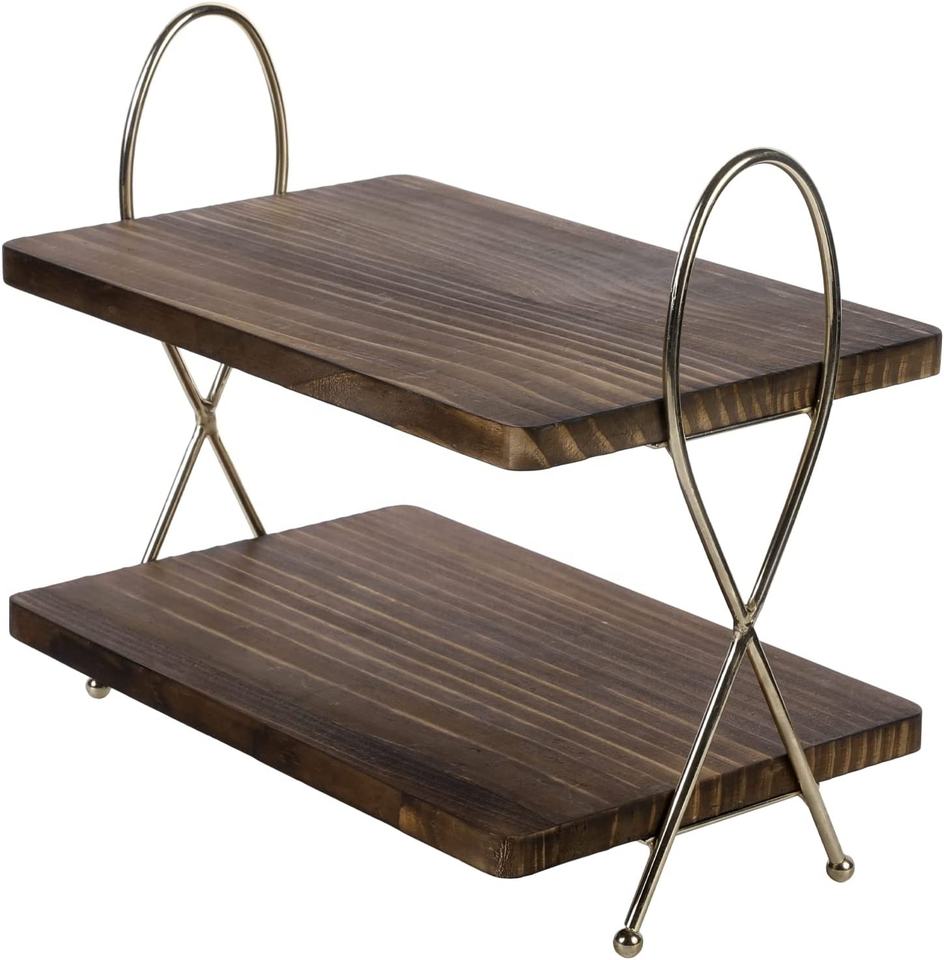 Two-Tier Solid Rectangular Wooden Cake Cupcake Displaying Stand Attractive Structured Luminous Metal Frame Decorative Use