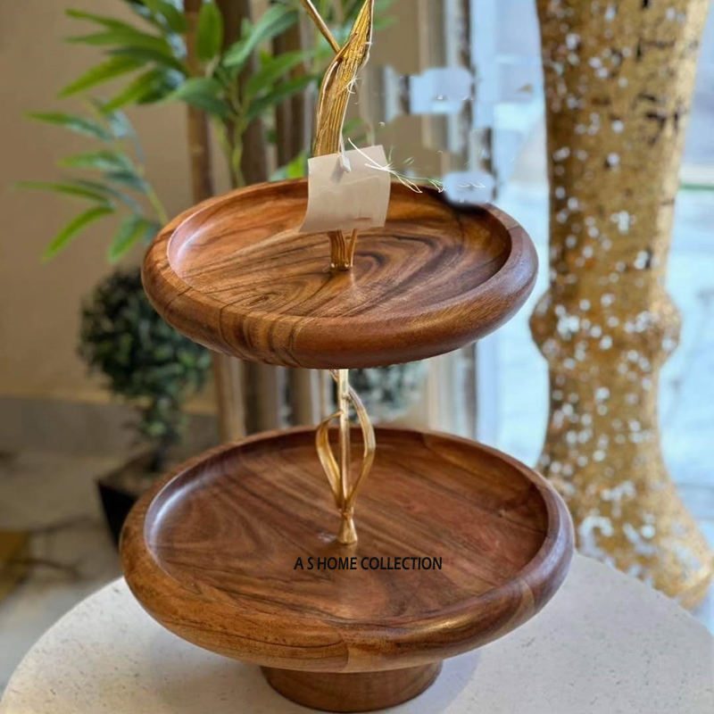 Two Tiered Wooden Farmhouse Cake Stand with Metal Decorative for Home Hotel Parties Birthday Other Occasion