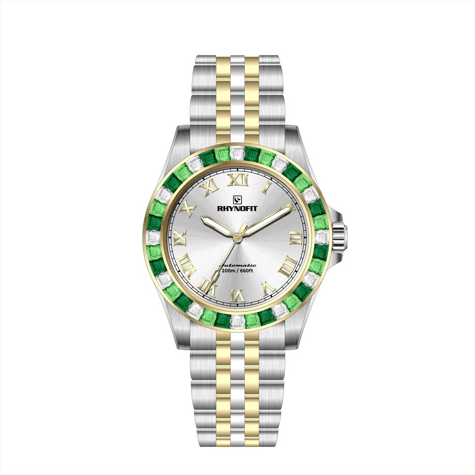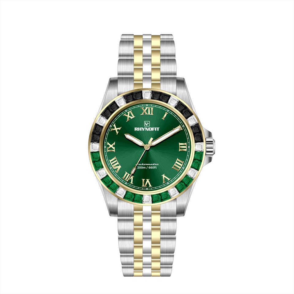 Two Tone 316L Stainless Steel Bracelet Nh35 Case Sapphire Crystal Rear Diamond for Customized Modified Diamond Dive Watch
