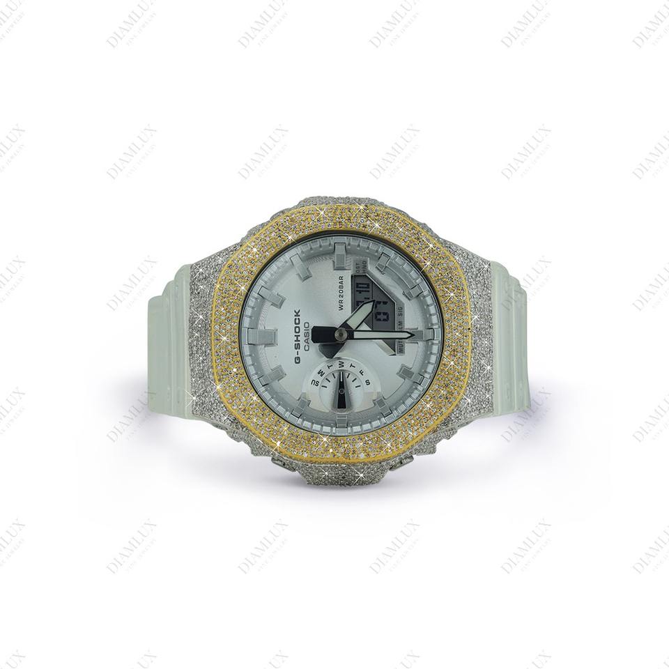 Two Tone Big Diamond Bezel G-Sh0ck Quartz Watch High Quality Luxury Unisex Silver Case Premium Fashion Best Price Ever