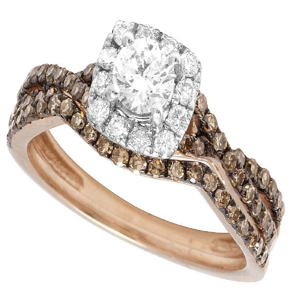 Two Tone Brown Moissanite Diamond Style Engagement Ring Set With Iced Out Hip Hop Jewelry In S925 Sterling Silver Ring or Women