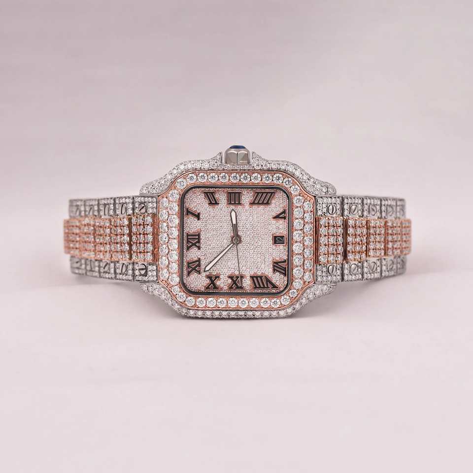 Two Tone Customized Moissanite Diamond Watch Fully Iced Out Hip Hop VVS Diamond Automatic Movement Watch, Stainless Steel Watch