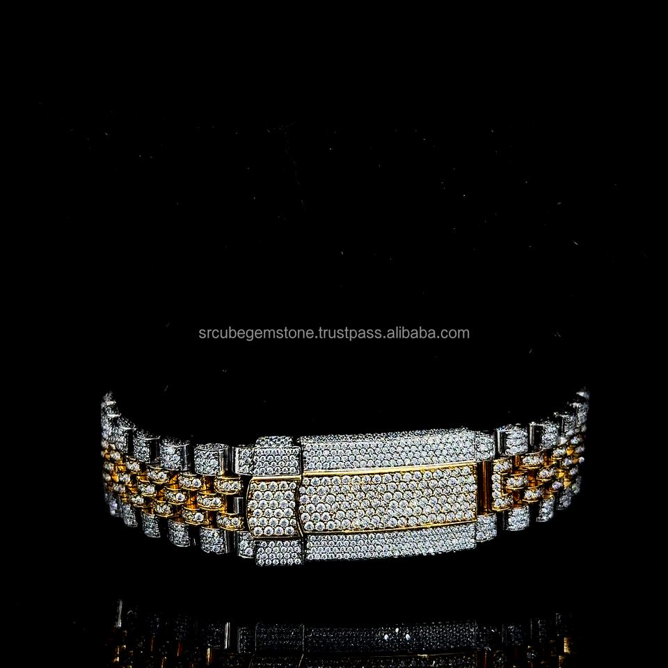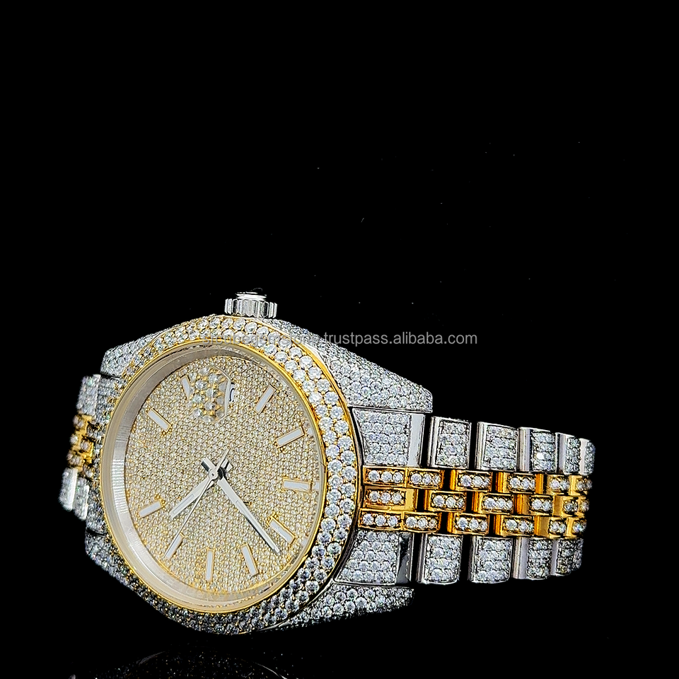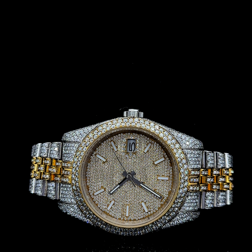 Two-Tone Gold Iced Out Moissanite Watch - Luxury Roman Dial Bust Down Diamond Watch- Premium Custom Watch