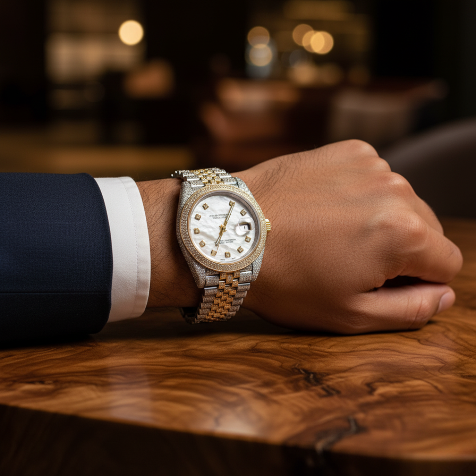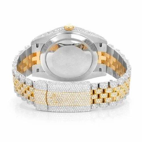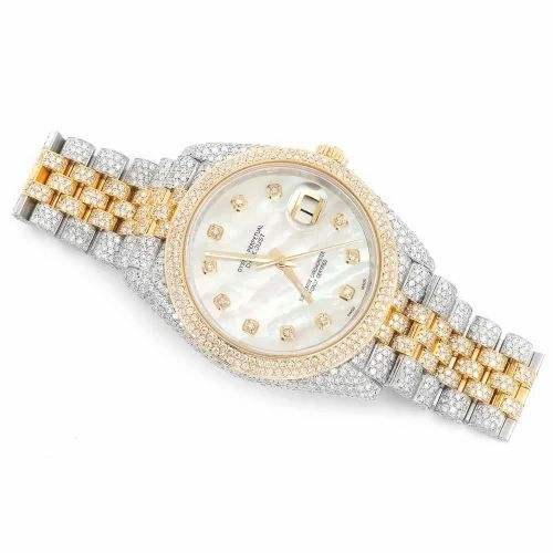 Two Tone Iced Out Moissanite Watch Mother Of Pearl Dial Gold Silver Luxury Diamond Style Watch Hip Hop
