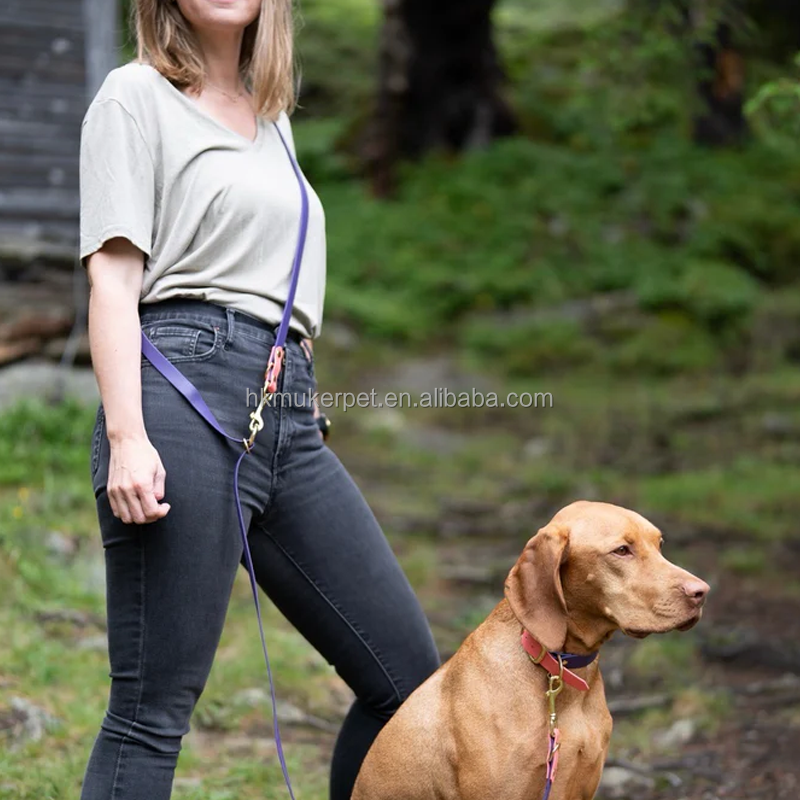 Two Tone Luxury Stylish Classic Durable 6 1 Runner's Dog Walking Belt Heavy Duty Snap Hooks Quick Release PVC Coated Polyester