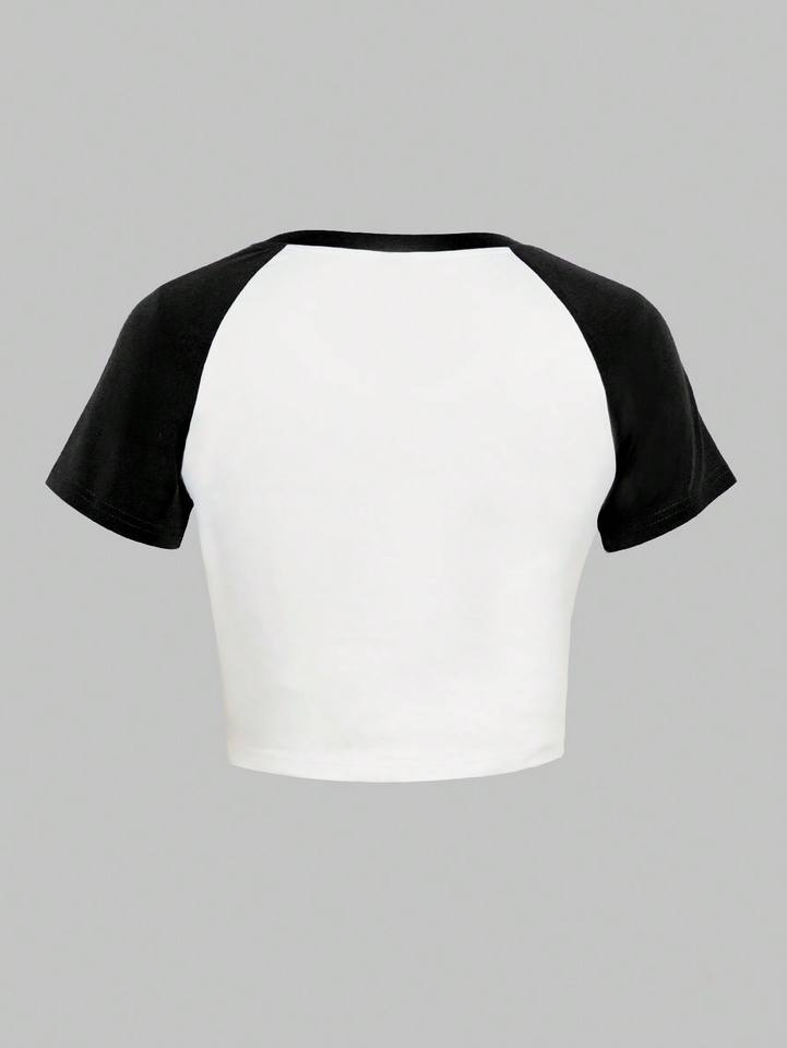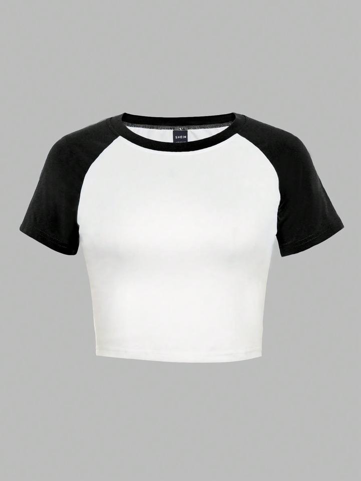 Two Tone Raglan Crop T Shirt Women Fitted Stretch Cotton Contrast Sleeve Casual Top Trendy Streetwear OEM women's shirt