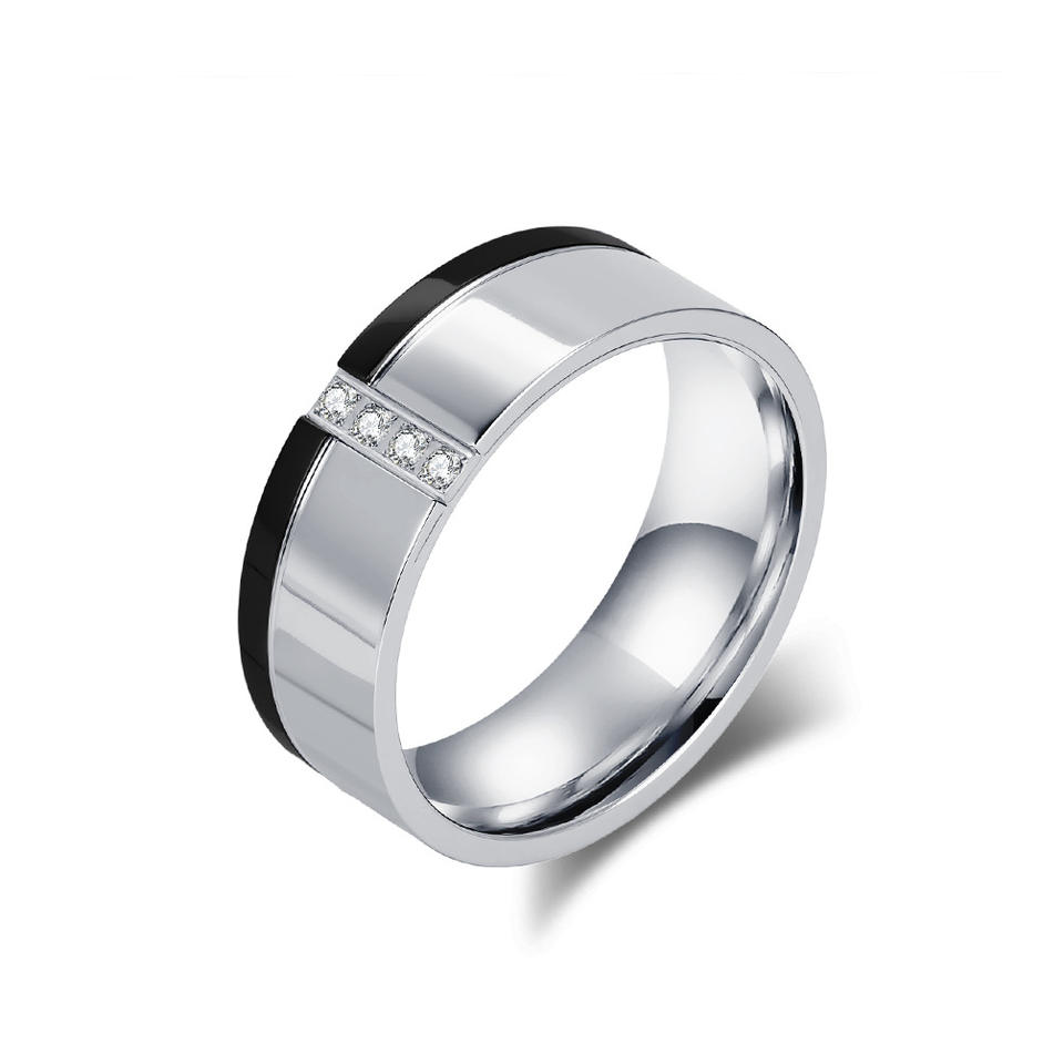 Two Tone Titanium Steel Ring With Diamond Accents For Men Geometric Design Everyday Wear