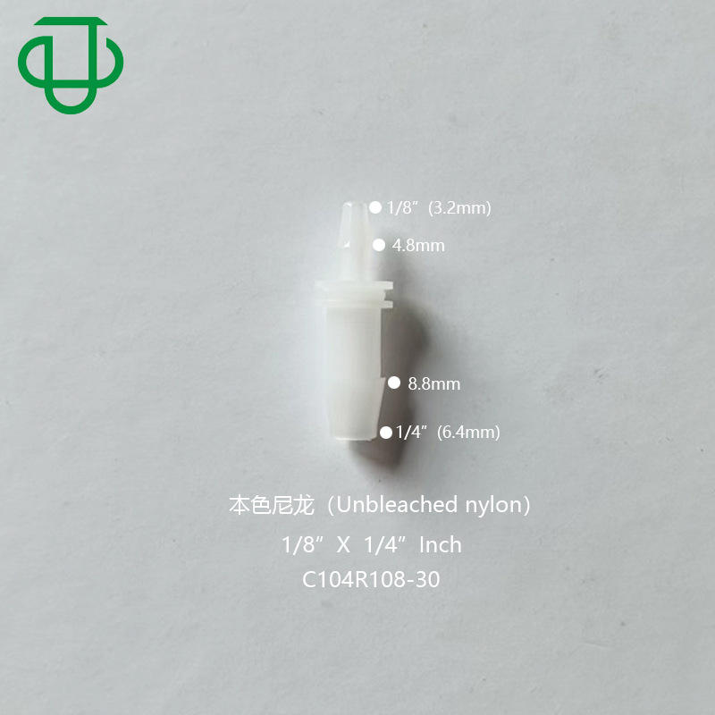 Two-Way Straight Connector White Nylon Plastic Slot Reducer with Pagoda Silicone for Soft Water Gas Hose Medical Plastic Product