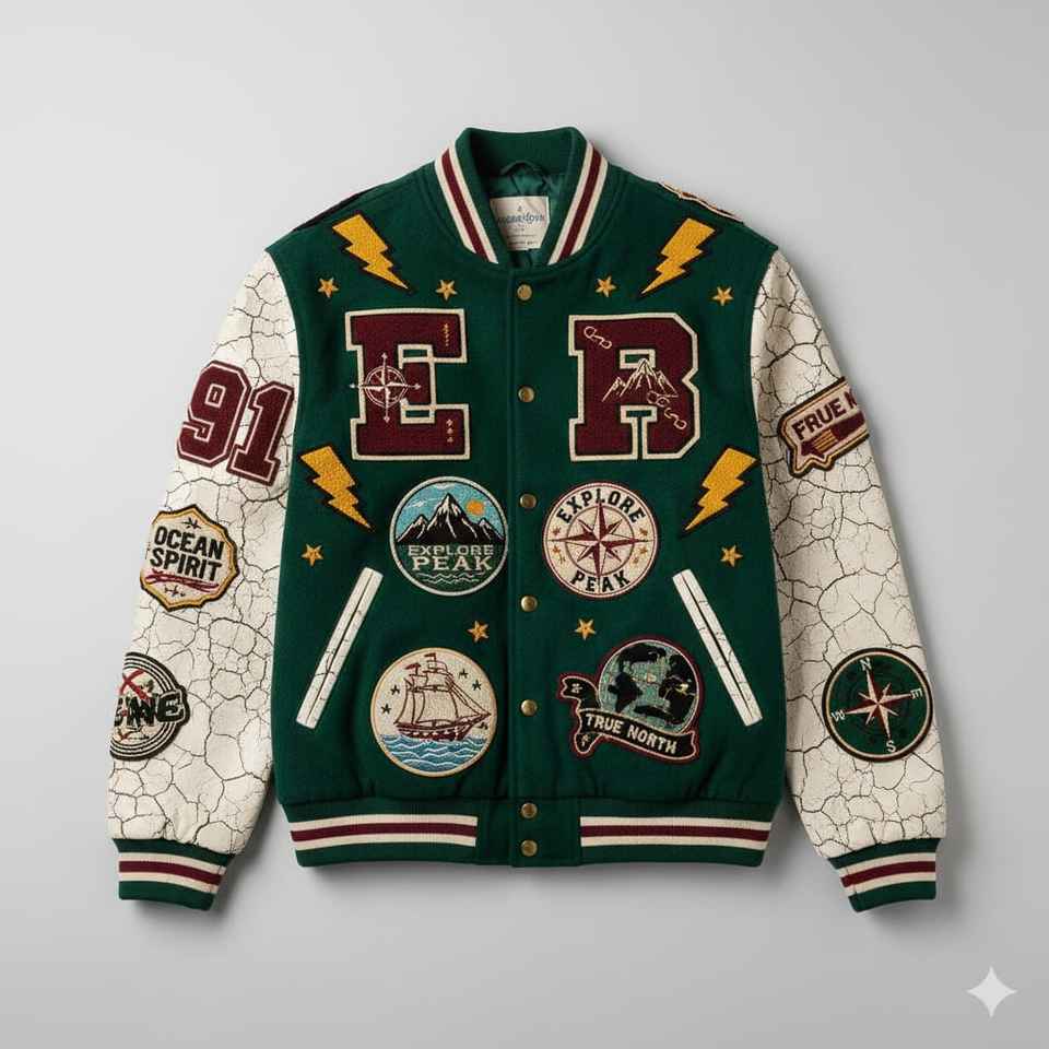 Two-Way Stretch Varsity Jacket Custom Print Logo Baseball Letterman Coat Athletic Style Bomber Outerwear Team Uniform OEM