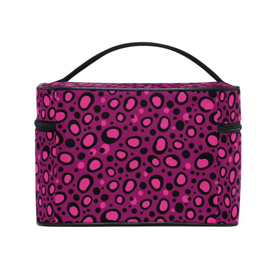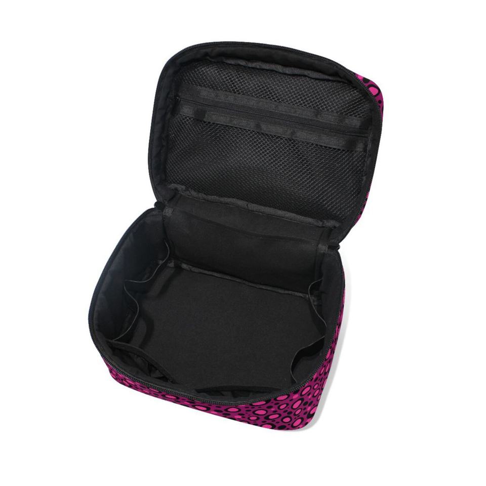 Two- Way Zipper Closure Pink Dot Custom Print Flip- Top Makeup Organizer Bag Makeup Case Cosmetic Toiletry Bag for Girls