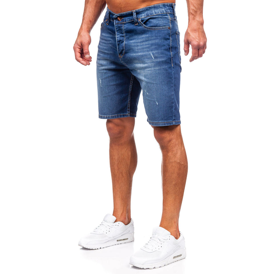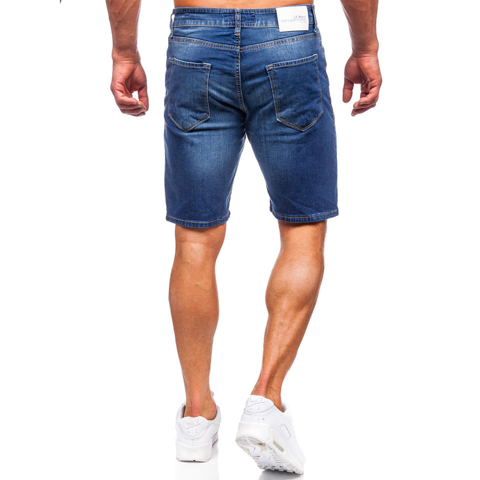 Two piece denim short sets for men summer casual outfit with short sleeve jacket and matching jeans shorts set