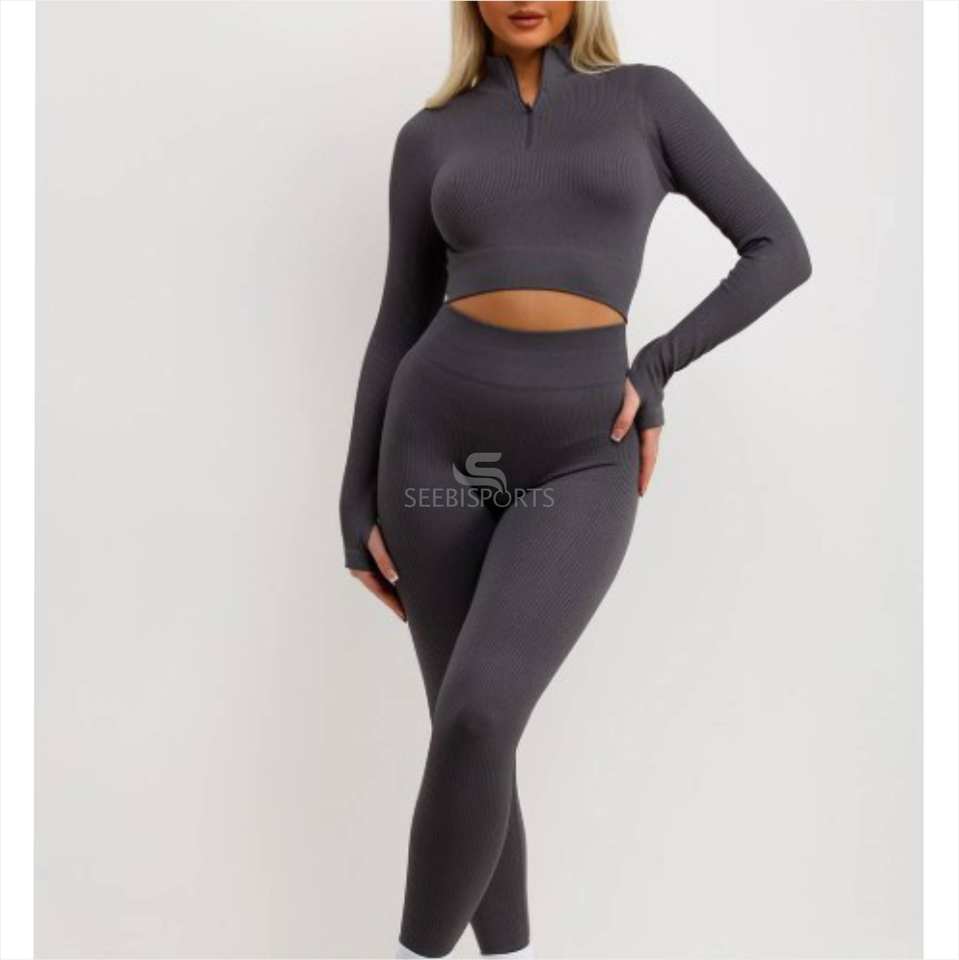 Two pieces top quality long sleeves full customizable fitness wear gym set for women with high quality material with OEM service