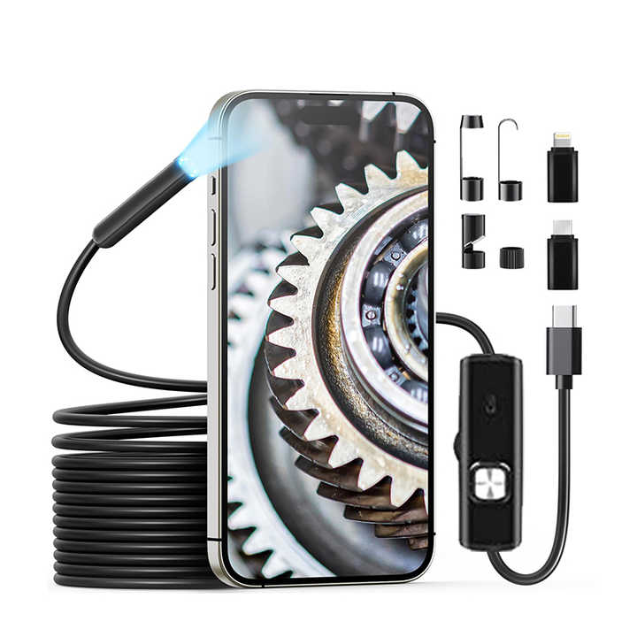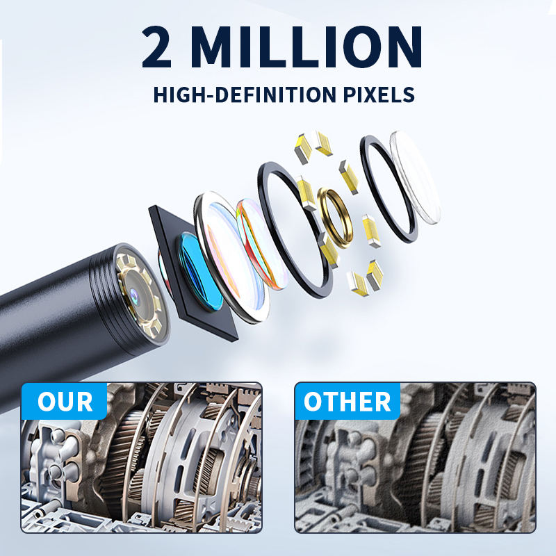 Two-Way Endoscope Inspection Camera with 8 LED Lights 8mm Rigid Probe Tube – Sink Pipe Drain Inspection Tool for Android iPhone