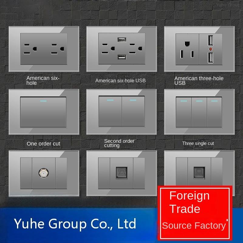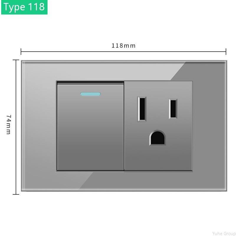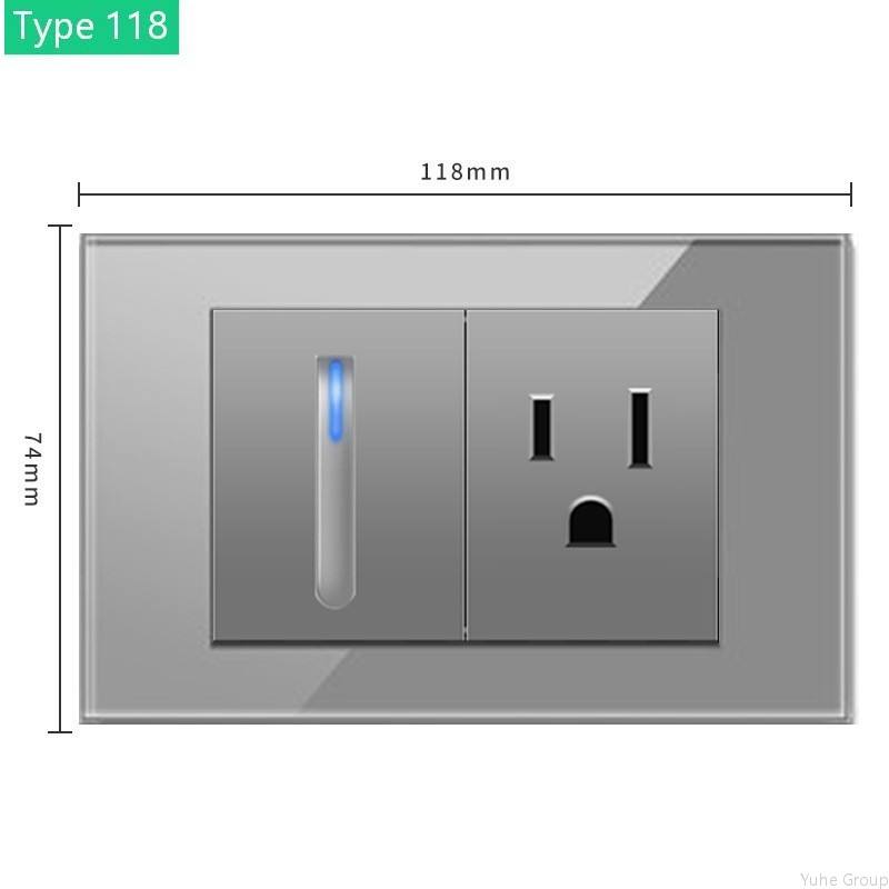 Type 118 American/Australian Plug USB Fast Charging Glass Modern Design Wall Lamp Socket Electric Switch Wired Gray USB C Type