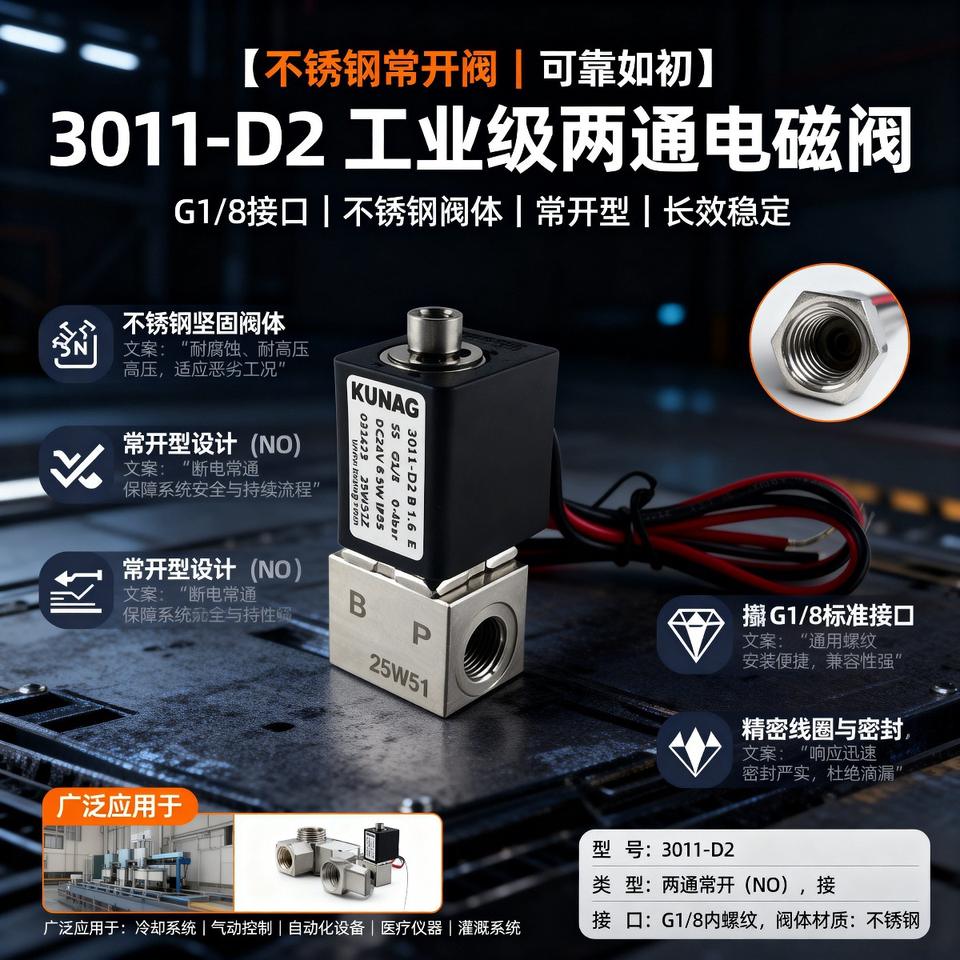 Type 3011-D2 High Temperature Stainless Steel Solenoid Valves Two Normally Open G1-8 and M5 Structure for Water & Gas Control