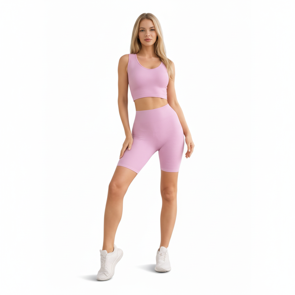 Tz242 1 Women's Sporty Ribbed 2 Piece Set Sleeveless Crop Top Above Knee Shorts Spandex Nylon Breathable Skinny Fit All Seasons
