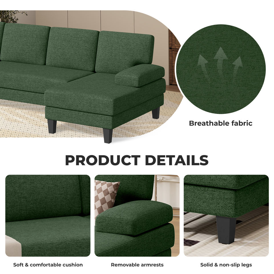 U-Shaped Sectional Sofa Living Room Modern Modular Extendable Double Lounge Sleeper Convertible Apartment Sponge Hotel Mall