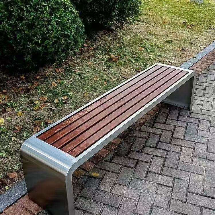 U-Shaped Stainless Steel Park Bench Anti-Corrosion Plastic Wood Customizable Outdoor Rest Bench for Communities Gym Scenic Spots