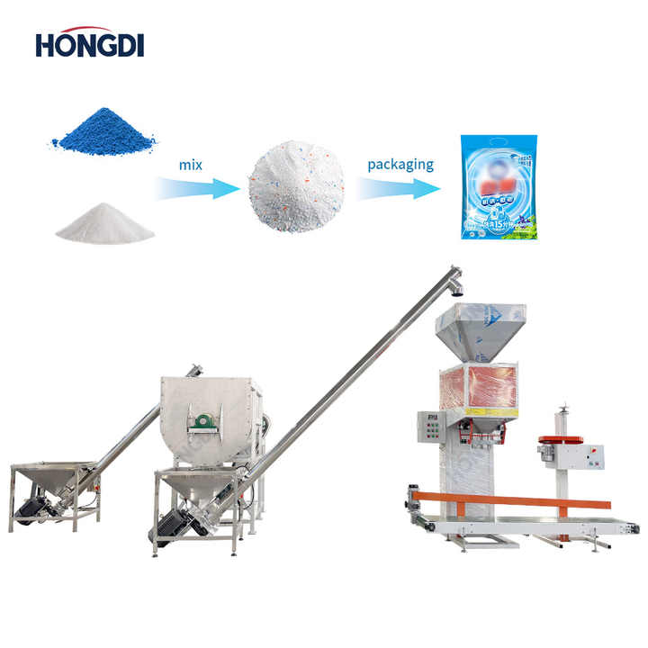 U-shaped mixed packaging production line is suitable for mixed packaging of washing powder, skin toner powder, and pearl powder.